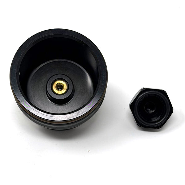 -HD BILLET SCHRADER CAP WITH O-RING FACE SEAL FOR REDUNDANT NITROGEN SEAL.