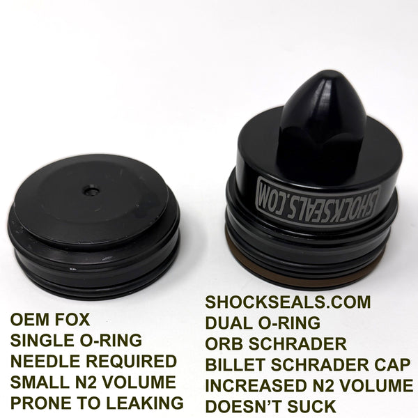 FOX PN INDIVIDUAL: 802-00-013-KIT SCHRADER VALVE, 010-00-223 BILLET SCHRADER CAP, 226-00-267-X OEM NEEDLE END CAP